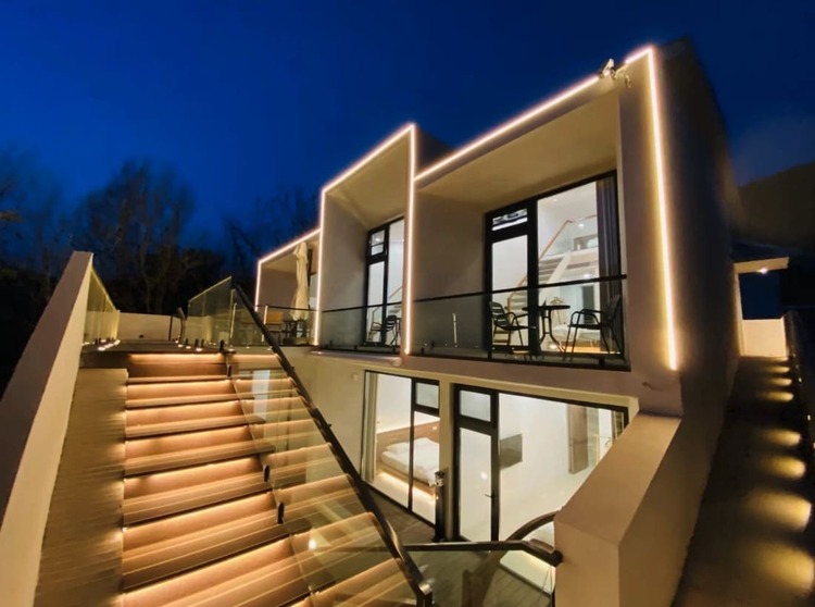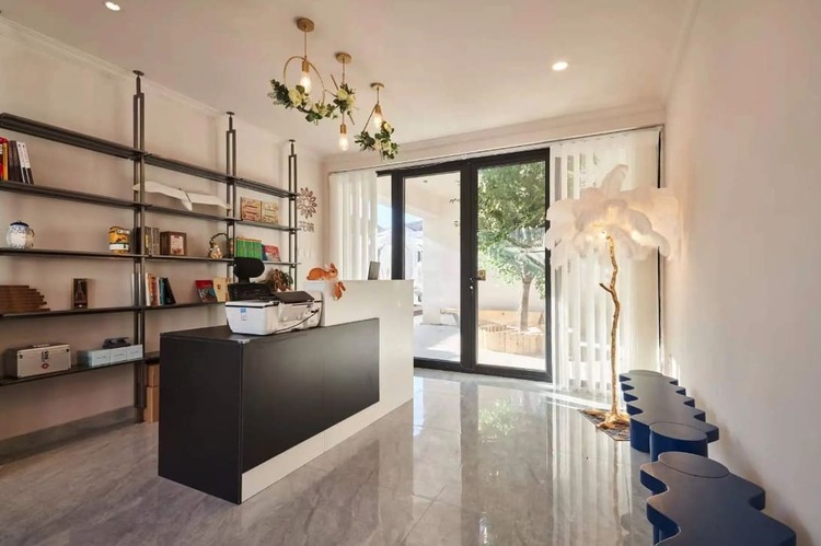 在漫桃林民宿,两座院落建筑以高级黑白灰色为主,结合现代与徽派建筑元素打造新中式庭院。房间配有大面积落地窗和智能窗帘,既保证了每个居住房间的私密舒适性也实现与公共空间的交流便利性。自然光线可以充分洒入每一个房间,营造出明亮开阔的居住环境。来漫桃林可以远离快节奏的都市生活,到城市周边与家人朋友感受难得的幽静慢生活,在露台上看夕阳躲到山后,在晴朗的夜晚看满天繁星。